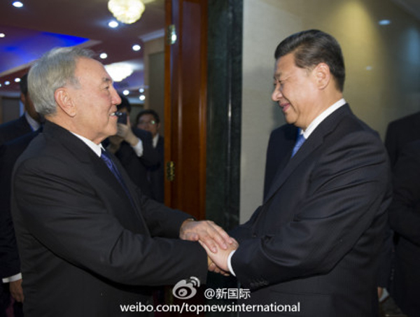 ????新華網(wǎng)北京9月13日電 據(jù)新華社“新國際”微博報道,習(xí)近平12日在會見納扎爾巴耶夫總統(tǒng)時說,今年6月我在北京會見了赴華參加夏令營活動的納扎爾巴耶夫大學(xué)200名師生,年輕人朝氣蓬勃、奮發(fā)向上的精神風(fēng)貌給我留下深刻印象。我們要為兩國年輕人提供更多交流互動的機會,確保中哈友好事業(yè)代代相傳。