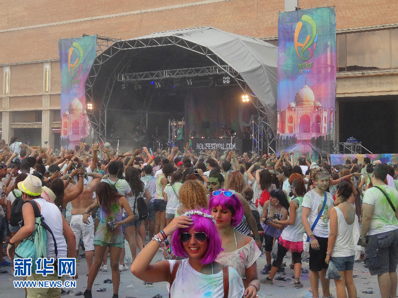 “2014巴塞羅那霍利節(jié)”現(xiàn)場的年輕人 (新華社記者周喆拍攝)