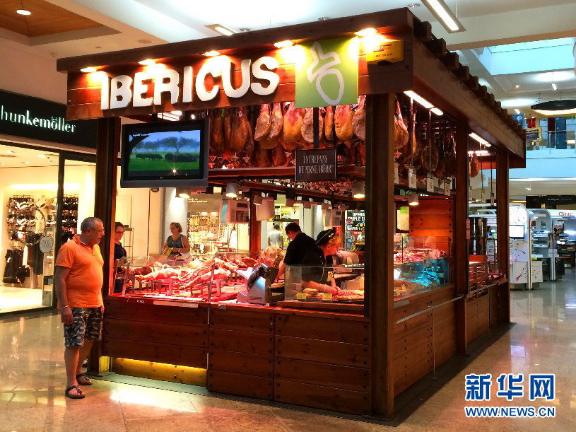 西班牙巴塞羅那一家專營(yíng)西班牙火腿的店鋪。