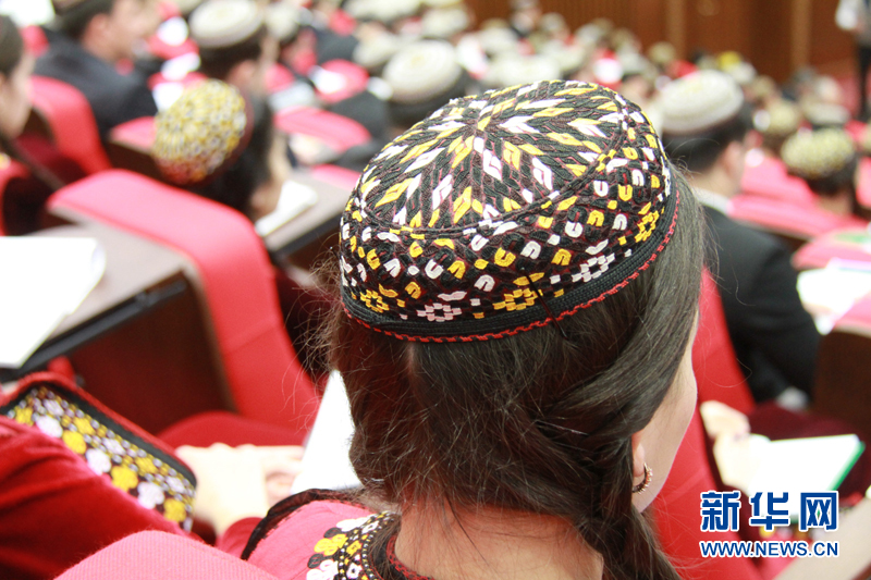 土庫曼斯坦姑娘戴著小帽? 記者 盧敬利攝