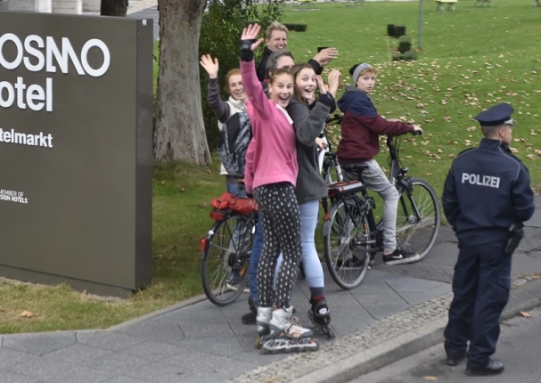 克強(qiáng)總理抵達(dá)后,柏林的街道兩旁,不少當(dāng)?shù)孛癖妼?duì)克強(qiáng)總理的車隊(duì)揮手、拍照。