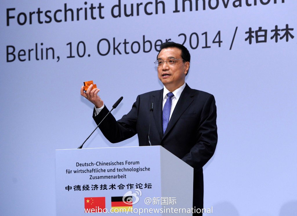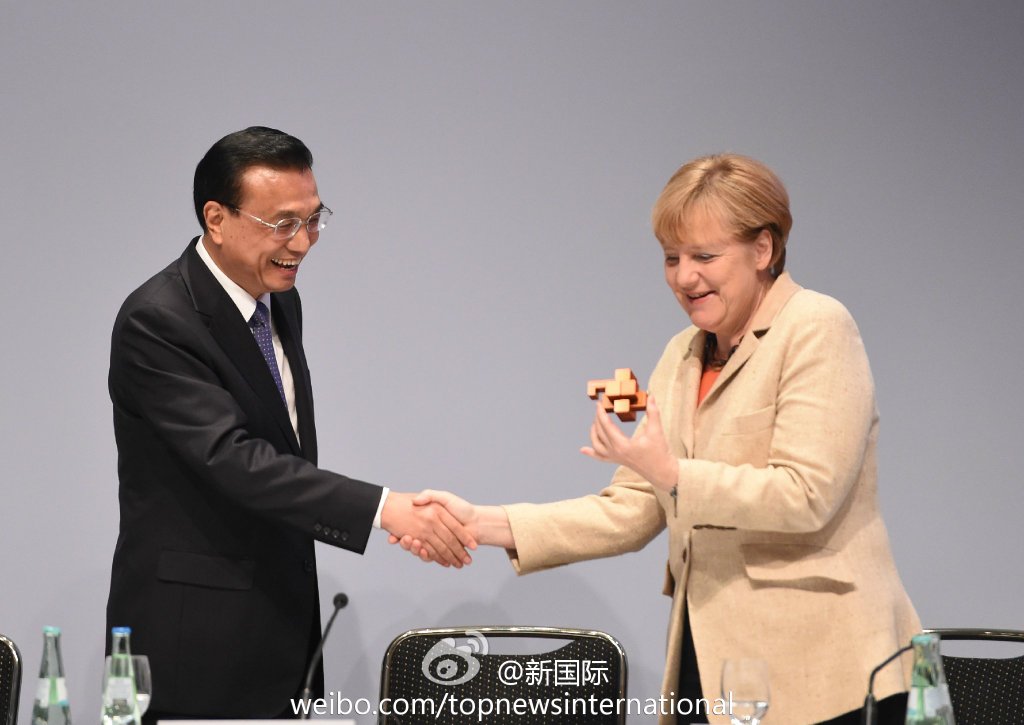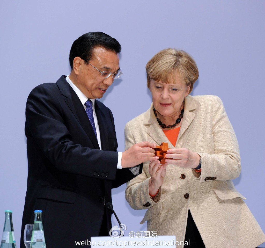 ????新華網(wǎng)北京10月11日電? 據(jù)新華社“新國際”微博報道,10日的中德經濟技術論壇上,李克強總理將一精巧的魯班鎖送給默克爾。他說,這是天津中德職業(yè)技術學院師生共同創(chuàng)作的作品,希望我送給默克爾總理。解開魯班鎖是解決一道難題,相信中德之間的合作能不斷創(chuàng)新,共同破解世界性難題,開啟美好的未來。