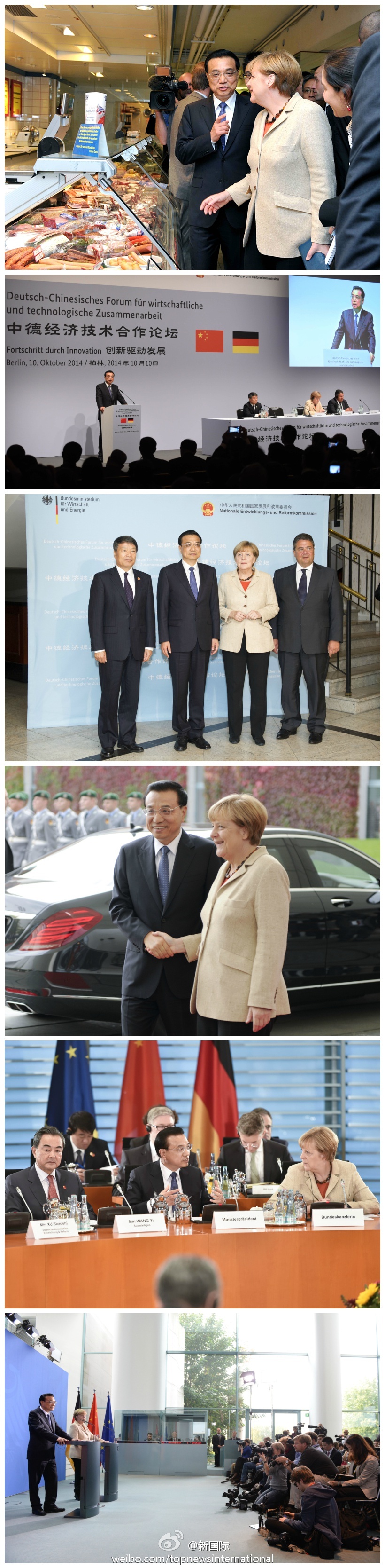 ??? 新華網(wǎng)北京10月11日電? 據(jù)新華社“新國際”微博報(bào)道,10日,李克強(qiáng)對(duì)德國訪問日程異常繁忙。兩國總理共同主持了規(guī)??涨暗牡谌喼械抡枭?,出席了中德經(jīng)濟(jì)技術(shù)論壇、簽字儀式,共見記者,參觀皇家瓷器廠……當(dāng)天默克爾同李總理一起出席了12場(chǎng)活動(dòng),長(zhǎng)達(dá)10個(gè)小時(shí)的深度會(huì)晤,共同規(guī)劃中德務(wù)實(shí)合作升級(jí)版。