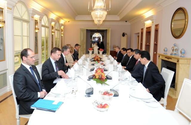在皇家瓷器廠的博凱里尼廳里,兩國總理一起吃了今天的第二頓飯——正式歡迎宴會之外的小范圍晚宴。