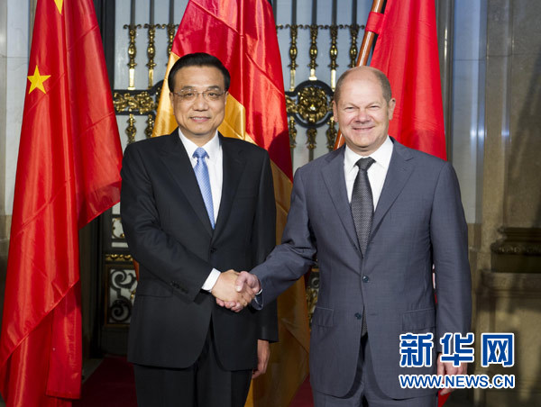 ????新華網(wǎng)德國漢堡10月11日電(記者田棟棟 唐志強(qiáng))國務(wù)院總理李克強(qiáng)當(dāng)?shù)貢r(shí)間11日上午在德國漢堡市會見市長肖爾茨。