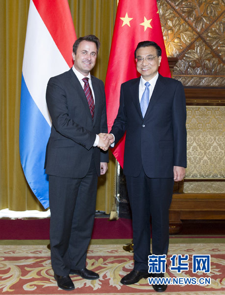 ??? 當(dāng)?shù)貢r間10月11日上午,中國國務(wù)院總理李克強在出席中歐論壇漢堡峰會前會見盧森堡首相貝特爾。 新華社記者王曄攝