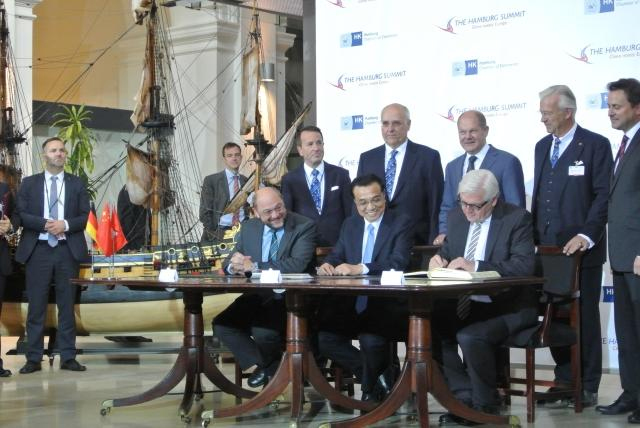 “我很贊賞漢堡峰會用了這樣一個主題——China meets Europe. 中國和歐洲相遇的結(jié)果是什么?是幸運(yùn)?!笨藦?qiáng)總理說。