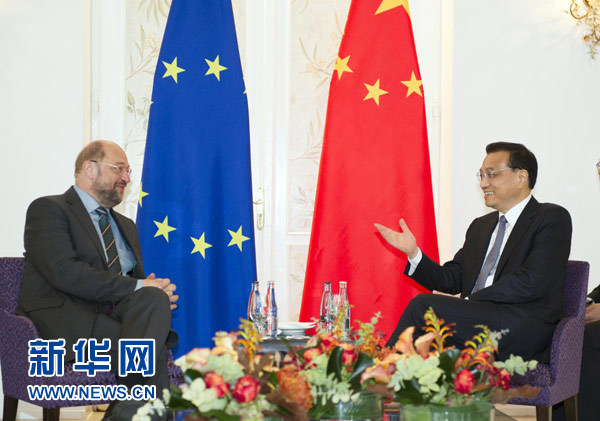 李克強(qiáng)會(huì)見(jiàn)歐洲議會(huì)議長(zhǎng)舒爾茨