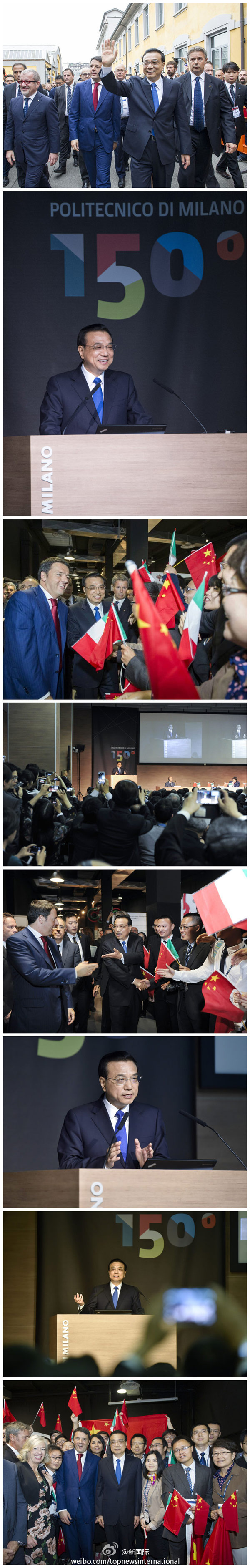 ????新華網(wǎng)北京10月16日電 據(jù)新華社“新國際”微博報(bào)道,李克強(qiáng)總理16日上午來到意大利著名的米蘭理工大學(xué)出席中意創(chuàng)新周大會(huì)。校園里,師生們揮舞著兩國國旗,歡呼迎接李克強(qiáng)的到來,其中有不少中國留學(xué)生。他們掏出手機(jī)拍個(gè)不停。李克強(qiáng)熱情地同大家打招呼、握手。