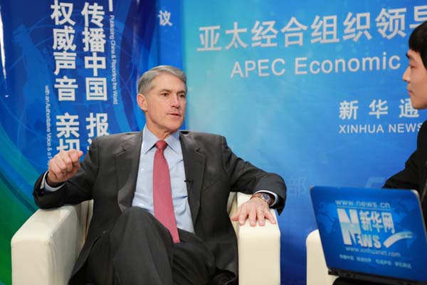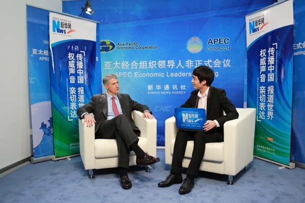????新華網(wǎng)北京11月11日電(記者 向博)美國卡特彼勒公司總裁芮德華9日在出席亞太經(jīng)合組織(APEC)工商領(lǐng)導(dǎo)人峰會期間接受新華網(wǎng)記者專訪,暢談基礎(chǔ)建設(shè)和工程機(jī)械行業(yè)在亞太地區(qū)的發(fā)展以及中國市場布局等話題。