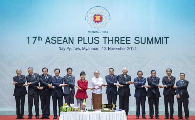 (11月13日,出席10+3會議的領(lǐng)導(dǎo)人合影。)