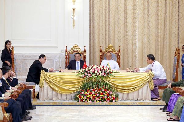 11月14日,李克強(qiáng)總理與緬甸總統(tǒng)吳登盛見證兩國(guó)簽署多份協(xié)議。