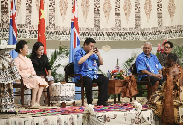 ????在隨后的集體會晤中,習主席又發(fā)表了主旨講話。講話的基調(diào),與此前他發(fā)表在《斐濟時報》和《斐濟太陽報》上的署名文章一脈相承,指出中國人民和太平洋島國人民“有著天然的親近感”,要做“好兄弟”“好伙伴”“好朋友”。