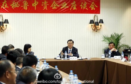 ????新華網(wǎng)北京11月23日電 據(jù)新華社“新華國際”客戶端報道,全國人大常委會委員長張德江22日在利馬與20家在秘魯中資企業(yè)代表座談交流。
