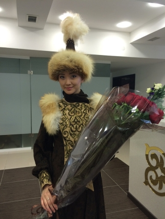 身著民族服裝的哈薩克族姑娘,給克強(qiáng)總理獻(xiàn)上了一束玫瑰花。禮賓官向記者透露,按照當(dāng)?shù)亓?xí)俗,迎接客人時(shí)一般都送顏色鮮艷的花,而且是送單數(shù)。哈薩克語中玫瑰代表著“熱情和祝?!保裉飓I(xiàn)給克強(qiáng)總理的就是15支玫瑰花。