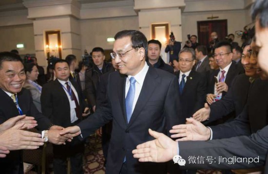 李克強(qiáng)參加中哈企業(yè)家委員會(huì)會(huì)議后,離開會(huì)場時(shí)與企業(yè)家們握手