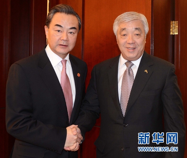 ??? 12月15日,陪同李克強(qiáng)總理訪問哈薩克斯坦的外交部長(zhǎng)王毅應(yīng)約會(huì)見哈薩克斯坦外長(zhǎng)伊德里索夫。 新華社記者 沙達(dá)提 攝