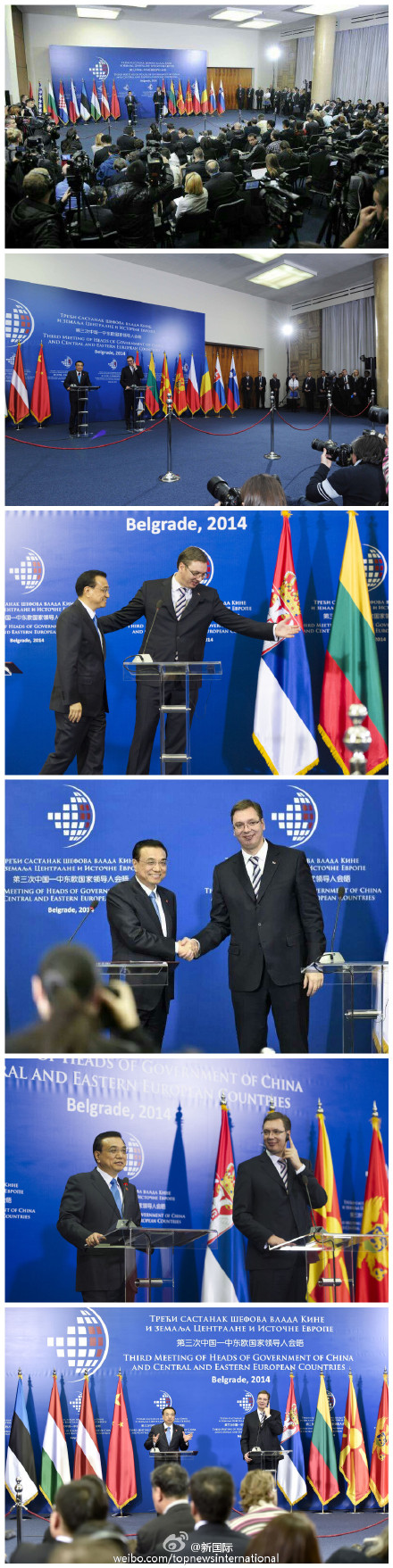 ??? 新華網(wǎng)北京12月17日電 據(jù)新華社“新國際”微博報道,李克強16日在貝爾格萊德出席中國-中東歐國家領(lǐng)導(dǎo)人會晤后與東道主塞爾維亞總理武契奇共見記者??偫碚f,中國-中東歐國家合作不僅有利于中國和中東歐國家,也有利于歐洲一體化和平衡發(fā)展,有利于歐盟擴大,有利于地區(qū)和世界的穩(wěn)定與發(fā)展。