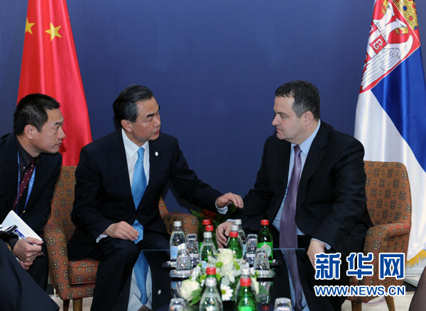 ??? 12月17日,正在陪同李克強(qiáng)總理訪問塞爾維亞的外交部長(zhǎng)王毅應(yīng)約會(huì)見塞爾維亞第一副總理兼外長(zhǎng)達(dá)契奇。 新華社記者 饒愛民 攝