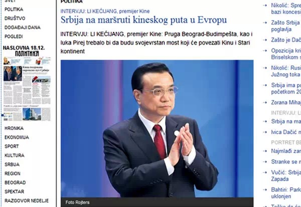 ????此外,塞爾維亞《政治報(bào)》網(wǎng)站刊文《中塞關(guān)系就像高速列車(chē)》,透露李克強(qiáng)和武契奇總理將共同為由中國(guó)專(zhuān)家建設(shè)的跨多瑙河大橋通車(chē)剪彩,并有望商談新的基建項(xiàng)目。塞爾維亞國(guó)家廣播電視臺(tái)RTS刊文《貝爾格萊德峰會(huì),加強(qiáng)經(jīng)濟(jì)關(guān)系》稱(chēng),近三十年時(shí)間里,中國(guó)總理將首訪(fǎng)塞爾維亞,中塞兩國(guó)總理將共同成為中國(guó)-中東歐國(guó)家領(lǐng)導(dǎo)人會(huì)晤的東道主。新的絲綢之路設(shè)想是為了加強(qiáng)中亞各國(guó)的聯(lián)系,而這條路也把中國(guó)帶到了巴爾干半島。