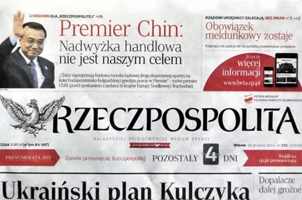 ????波蘭《共和國(guó)報(bào)》刊登對(duì)李克強(qiáng)聯(lián)合書(shū)面采訪(fǎng)稿件