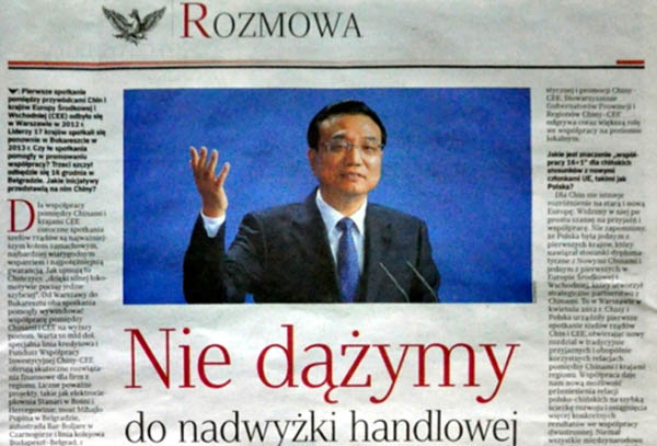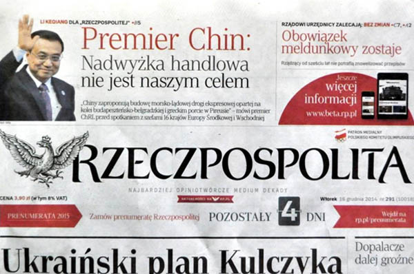 波蘭《共和國報》刊登對李克強聯(lián)合書面采訪稿件