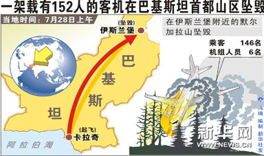 巴基斯坦藍(lán)色航空公司一架由卡拉奇飛往伊斯蘭堡的客機在伊斯蘭堡附近山區(qū)墜毀,機上152名乘客和機組人員全部遇難。詳細(xì)