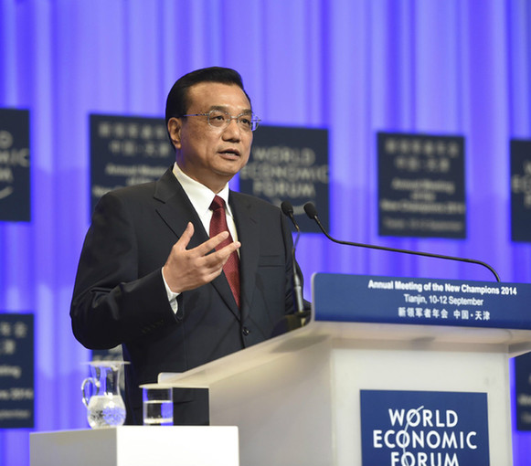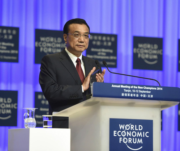 中國(guó)國(guó)務(wù)院總理李克強(qiáng)出席2014年夏季達(dá)沃斯論壇開幕式