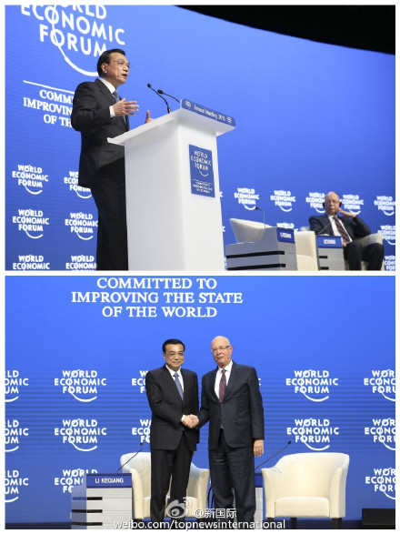 ??? 新華網(wǎng)北京1月22日電 據(jù)新華社“新國際”微博報(bào)道,李克強(qiáng)總理21日在世界經(jīng)濟(jì)論壇年會(huì)上發(fā)表特別致辭,為應(yīng)對(duì)全球新局勢(shì)提出三大主張。他說,面對(duì)復(fù)雜的國際局勢(shì),要堅(jiān)定維護(hù)和平穩(wěn)定;面對(duì)多元的世界文明,要共同促進(jìn)和諧相處;面對(duì)多變的經(jīng)濟(jì)形勢(shì),要大力推動(dòng)開放創(chuàng)新。