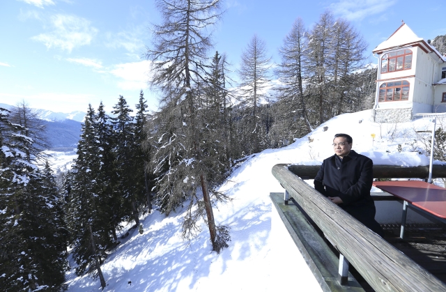 ????上了山頂,才明白咱總理為什么要來(lái)。達(dá)沃斯小鎮(zhèn)地處阿爾卑斯山脈,周?chē)荷江h(huán)抱。海拔1800米的沙茨阿爾卑山頂視野極好,極目遠(yuǎn)眺,藍(lán)天,白云,雪峰,蒼松,周?chē)o謐得似乎只剩下積雪掉落的聲音。