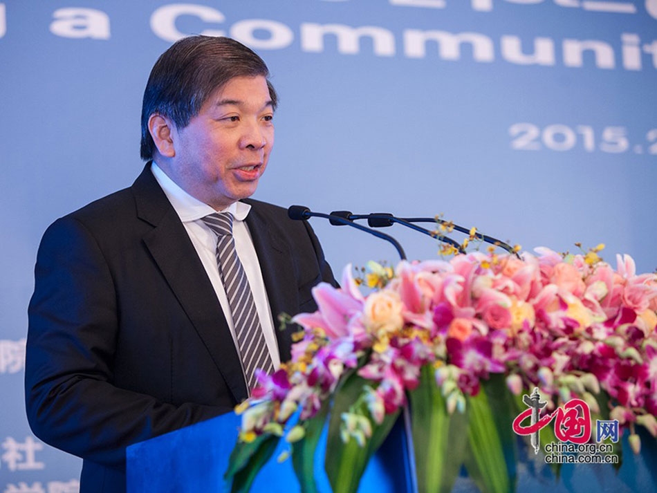 圖為新加坡工商聯(lián)合總會主席、 新加坡太平船務董事總經理張松聲在“21世紀海上絲綢之路國際研討會”高峰論壇發(fā)表演講。中國網記者 鄭亮 攝