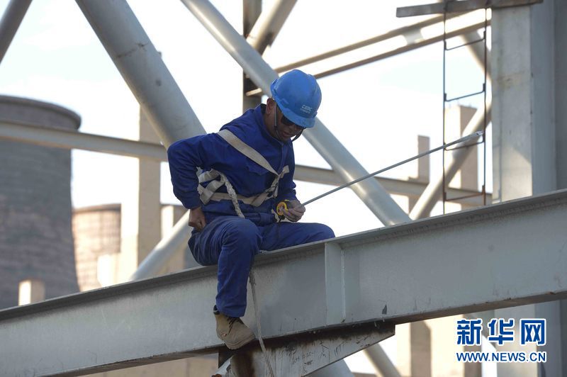 烏茲別克斯坦安格連(市)電廠主廠房鋼結構施工現(xiàn)場。新華網(wǎng)發(fā) 記者沙達提 攝