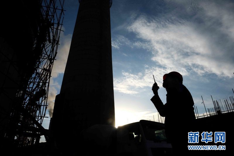 ????烏茲別克斯坦安格連(市)電廠煙囪施工現(xiàn)場,來自中國能建集團(tuán)黑龍江省火電第一工程有限公司的工人在作業(yè)。新華網(wǎng)發(fā) 記者沙達(dá)提 攝