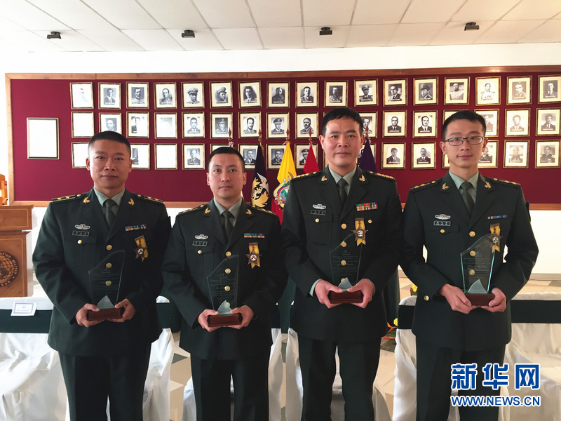 ????新華網(wǎng)基多4月21日電(記者梁君茜)厄瓜多爾聯(lián)合指揮司令部21日在首都基多舉行授勛儀式,授予中國(guó)人民解放軍第八批援厄醫(yī)療隊(duì)的4名成員“武裝力量之星”榮譽(yù)勛章。