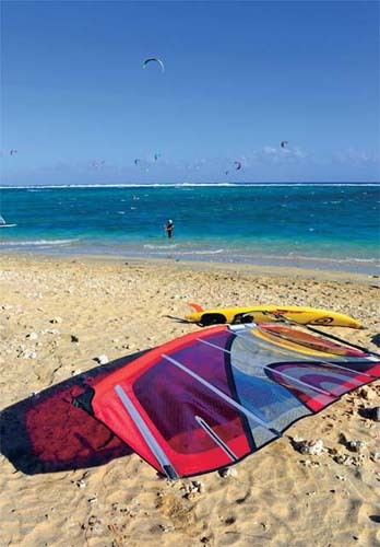我們在留尼旺的幾天時間里風浪都比較大,不過來到海邊卻發(fā)現海灘上依舊人聲鼎沸,原來好動的法國人和一些歐美游客正利用風浪玩起了刺激的海上運動。幾米高的海浪中早已有了十多名沖浪好手相繼嘗試挑戰(zhàn),雖然他們中的大部分只是業(yè)余愛好,并非職業(yè)沖浪選手,不過一招一式也是頗為認真。靠近海岸附近的淺水區(qū)則更多是風帆、摩托艇、皮劃艇、海浪滑板等各項水上運動的世界,對于他們來說,大風就是運動的動力,海水就是運動的場地。一般島上的家庭都會趁著周末舉家開車來到海邊,喜歡玩水的玩水,而其他家庭成員則在沙灘上聚餐或者聊天,如此融入大自然真是瀟灑。