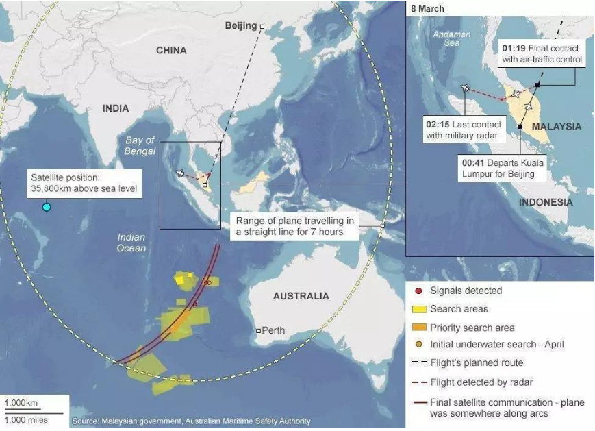 許多人還記得,MH370失去聯(lián)系后,根據(jù)飛機(jī)曾與衛(wèi)星聯(lián)系的信號在印度洋東部劃出了一個(gè)12萬平方公里的搜尋區(qū),那為什么現(xiàn)在殘骸又出現(xiàn)在了數(shù)千公里外、印度洋西南部的留尼汪島?