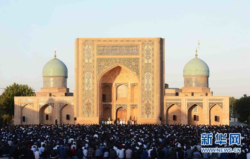 9月24日,在烏茲別克斯坦首都塔什干哈斯特·伊瑪姆建筑群清真寺廣場(chǎng),人們參加古爾邦節(jié)禮拜。當(dāng)天,烏茲別克斯坦各地慶祝伊斯蘭教傳統(tǒng)節(jié)日古爾邦節(jié)?!肮艩柊罟?jié)”亦稱“宰牲節(jié)”,是伊斯蘭教三大節(jié)日之一。 新華社記者沙達(dá)提 攝