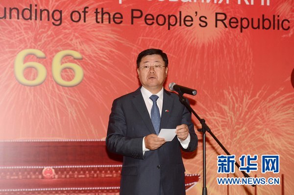 新華網(wǎng)塔什干9月30日電(記者沙達(dá)提)中國(guó)駐烏茲別克斯坦使館30晚在塔什干隆重舉行國(guó)慶66周年招待會(huì),烏第一副總理兼財(cái)政部長(zhǎng)阿濟(jì)莫夫、最高會(huì)議立法院(下院)副議長(zhǎng)凱特莫諾夫、副總檢察長(zhǎng)哈里莫夫、國(guó)防部第一副部長(zhǎng)兼烏軍總參謀長(zhǎng)諾爾馬托夫、外交部副部長(zhǎng)法濟(jì)洛夫、內(nèi)務(wù)部副部長(zhǎng)諾爾馬托夫、對(duì)外經(jīng)貿(mào)部副部長(zhǎng)圖列甘諾夫及烏各界友好人士、外國(guó)駐烏使節(jié)、在烏中資機(jī)構(gòu)和華人華僑代表等400余人出席。