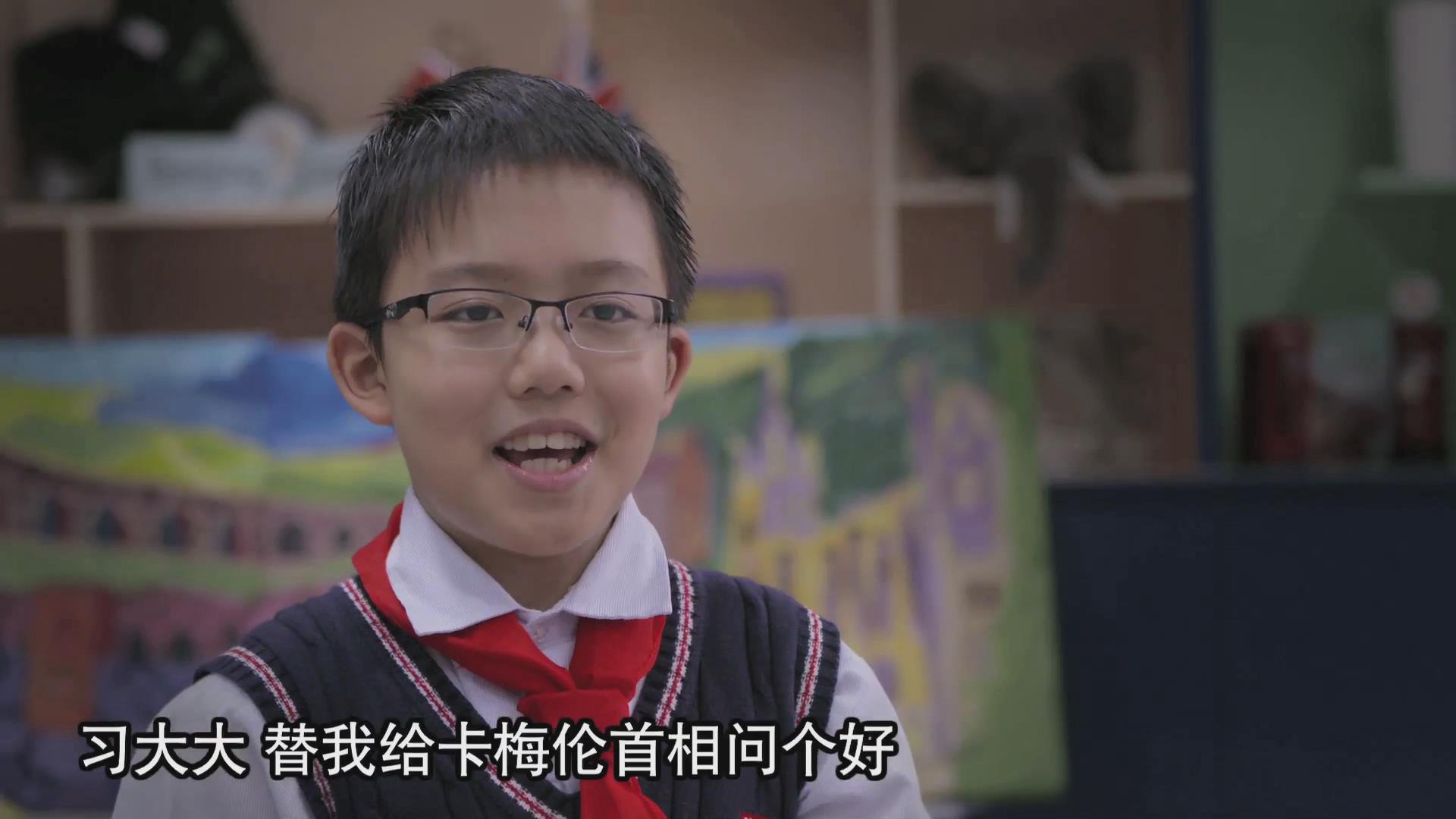 短片結(jié)尾處還有“彩蛋”,成都龍江路小學(xué)分校學(xué)生鮮博文最后說(shuō):“習(xí)大大,替我給卡梅倫首相問個(gè)好,我見過(guò)他的!”