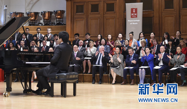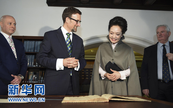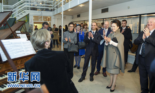 彭麗媛抵達時,受到皇家音樂學院董事會主席溫斯頓勛爵、學院院長、英國友人等熱烈歡迎。在院長陪同下,彭麗媛欣賞了獲獎學生和校友精彩的聲樂、器樂表演,參觀了樂器博物館,觀賞了圖書館珍藏的莫扎特、肖邦等音樂大師創(chuàng)作手稿,并同學院師生進行交流。彭麗媛表示,音樂作為一種高尚的藝術(shù)形式,超越國家、民族、歷史、文化界限?;始乙魳穼W院培養(yǎng)出眾多世界級藝術(shù)家。中國有不少音樂作品享譽世界,希望皇家音樂學院今后加強同中國音樂院校的交流,為促進中英教育和藝術(shù)合作貢獻力量。