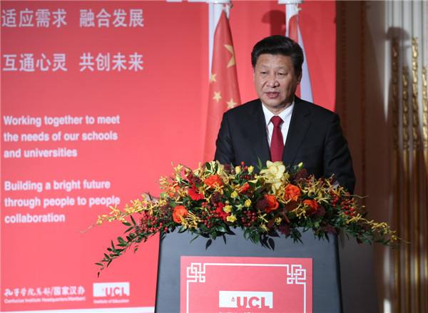 10月22日,國家主席習(xí)近平在倫敦出席全英孔子學(xué)院和孔子課堂年會(huì)開幕式。這是習(xí)近平在年會(huì)開幕式上致辭。(新華社記者龐興雷攝)