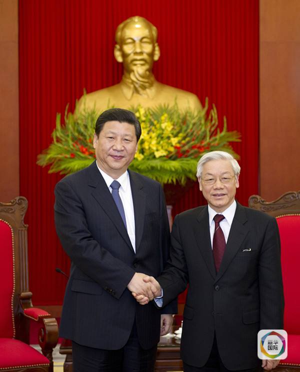 2011年12月21日,時任中共中央政治局常委、國家副主席習近平在河內(nèi)會見越共中央總書記阮富仲。