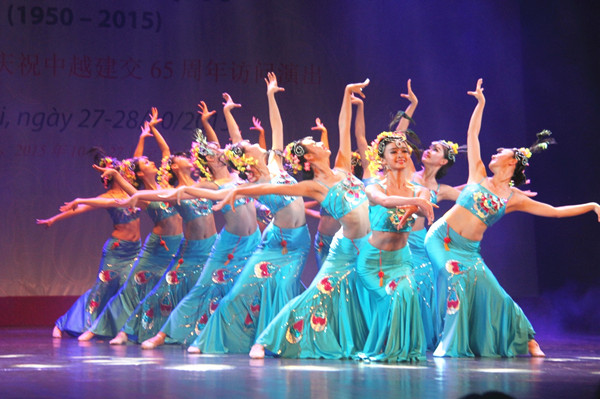 2015年10月27日,中國云南省藝術團在越南首都河內(nèi)表演傣族舞蹈《美的祝福》,慶祝中越建交65周年。