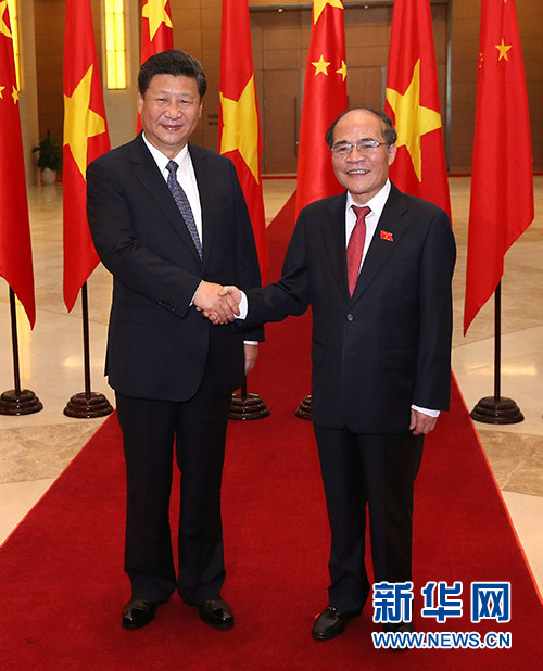 新華網(wǎng)河內(nèi)11月6日電(記者王豐豐 李忠發(fā))6日,中共中央總書(shū)記、國(guó)家主席習(xí)近平在河內(nèi)會(huì)見(jiàn)越南國(guó)會(huì)主席阮生雄。