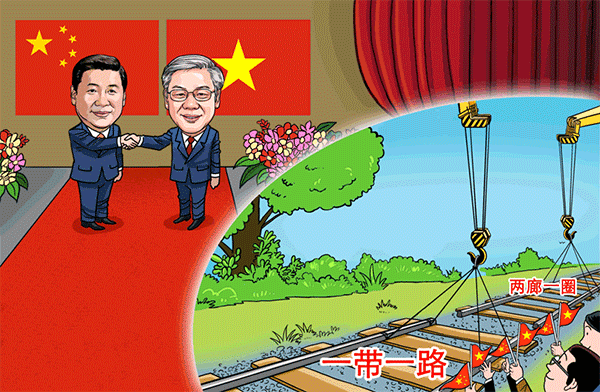 中越是山水相連的友好鄰邦,兩國(guó)政治制度相同、發(fā)展道路相近、前途命運(yùn)相關(guān)。建交65年來,中越雙邊關(guān)系正朝著建設(shè)中越命運(yùn)共同體的方向不斷前進(jìn)。習(xí)近平此訪,將增進(jìn)互信,凝聚共識(shí),發(fā)揚(yáng)中越“好鄰居、好朋友、好同志、好伙伴”特殊情誼,推動(dòng)中越關(guān)系沿著正確道路繼續(xù)發(fā)展,擴(kuò)大“一帶一路”和“兩廊一圈”框架內(nèi)務(wù)實(shí)合作,推進(jìn)中越全面戰(zhàn)略合作伙伴關(guān)系邁上新臺(tái)階。(作者系中國(guó)社會(huì)科學(xué)院世界經(jīng)濟(jì)與政治研究所國(guó)際政治經(jīng)濟(jì)學(xué)研究室副主任徐秀軍 漫畫作者蔡艨)