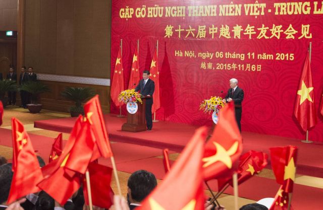 11月6日,中共中央總書記、國家主席習近平和越共中央總書記阮富仲在河內(nèi)共同會見參加第十六屆中越青年友好會見活動的中越青年代表。新華社記者李學仁攝