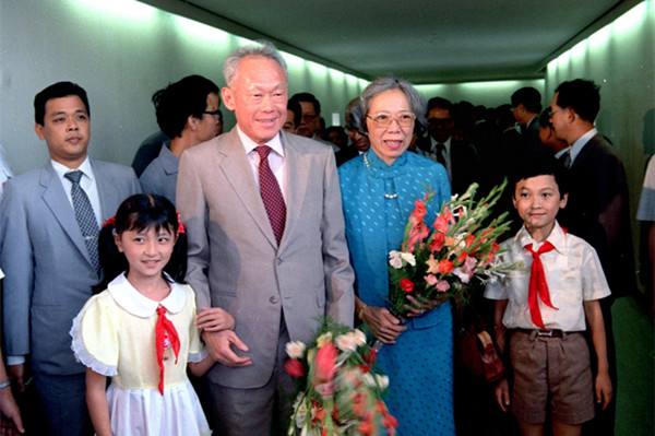 1985年9月13日至25日,應(yīng)中國政府邀請,新加坡總理李光耀和夫人對中國進(jìn)行了正式友好訪問。圖為9月13日,李光耀總理和夫人乘飛機到達(dá)上海時,上海少先隊員向新加坡貴賓獻(xiàn)花。