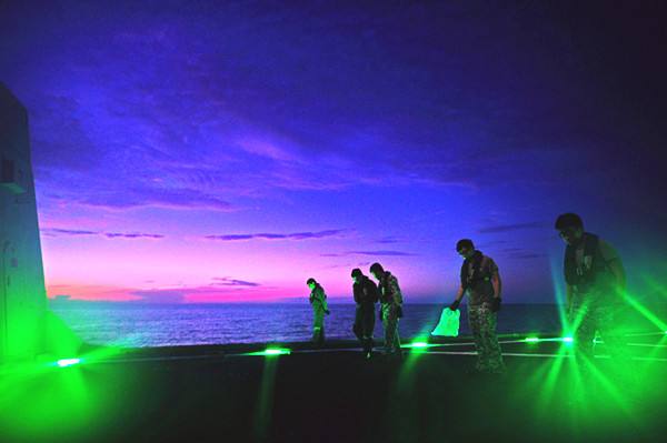 圖為 2015年5月25日,新加坡海軍“剛毅”號護(hù)衛(wèi)艦士兵進(jìn)行直升機起降準(zhǔn)備工作。當(dāng)日,中國海軍“玉林”號導(dǎo)彈護(hù)衛(wèi)艦與新加坡海軍“剛毅”號護(hù)衛(wèi)艦、“奮勇”號導(dǎo)彈巡邏艦在馬來半島以東海域順利完成了代號為“中新合作-2015”的海上雙邊軍事演習(xí)。這是中新兩國首次進(jìn)行的雙邊海上軍事演習(xí)。