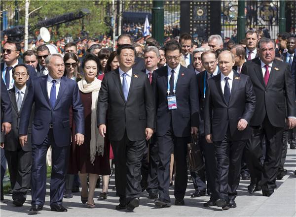 圖為2015年5月9日,習(xí)近平出席俄羅斯紀(jì)念衛(wèi)國(guó)戰(zhàn)爭(zhēng)勝利70周年慶典。(黃敬文攝)