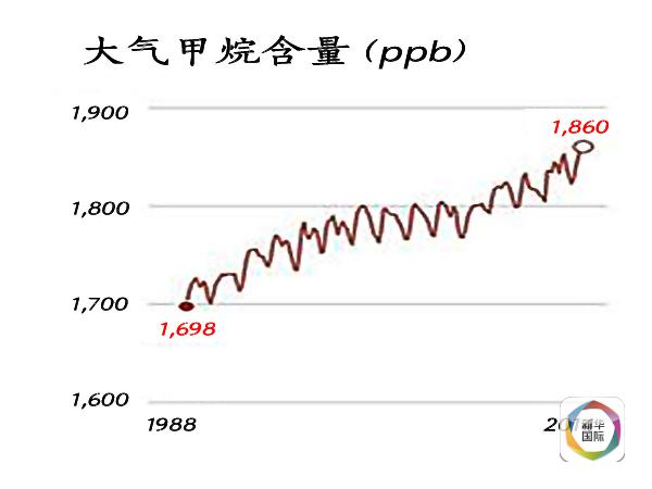 美國國家海洋和大氣管理局統(tǒng)計,2014年大氣中甲烷的含量是工業(yè)革命前的2.5倍強。